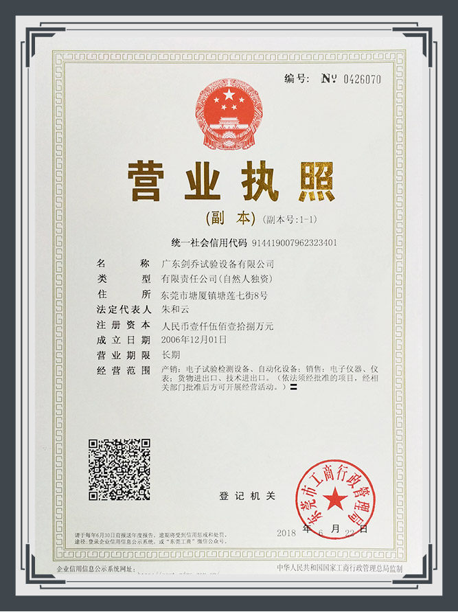 • 國家級(jí)高新技術(shù)企業(yè)證書、中國(試驗(yàn)測試儀器)十佳品牌。